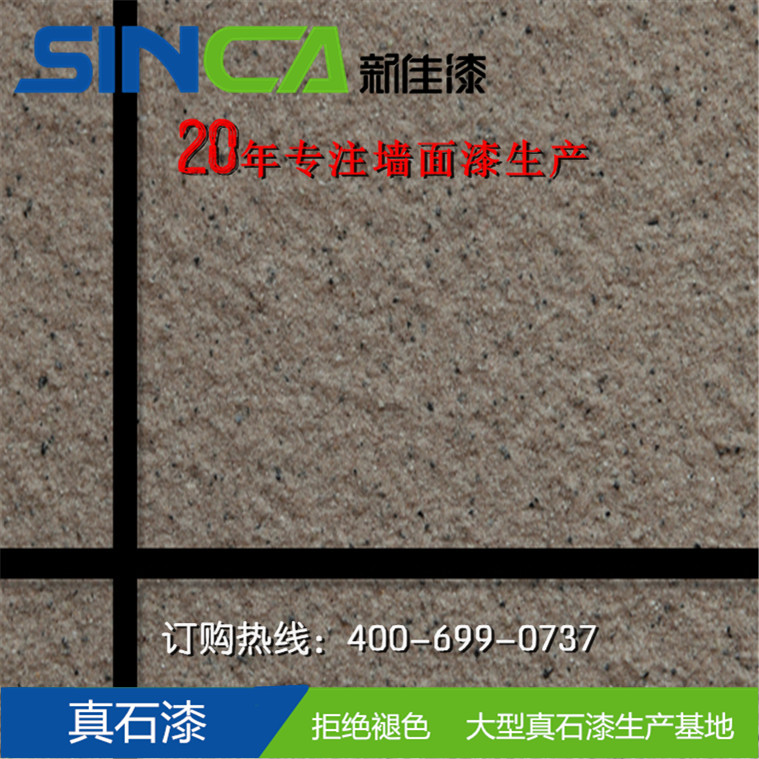 有些天然真石漆在噴涂時落砂較多,嚴(yán)峻時可達1/3左右,形成嚴(yán)峻糜費。除了施工辦法的緣由外,原料和配方也能夠形成上述景象。當(dāng)前用于天然真石漆的砂子有人工砂和自然砂兩種。據(jù)察看,用自然砂制備的天然真石漆,失落殺兩要比用人工砂時少。這能夠與砂子的硬度、外表形態(tài)有關(guān)。普通來說,用硬度較高、外表較嚴(yán)密潤滑的砂子時輕易失落砂。別的,制備天然真石漆時,砂子的級配也很主要。級配得當(dāng)?shù)奶烊徽媸岵恢粐娡繒r失落砂景象較少,并且涂層較嚴(yán)密。因而建議在制造天然真石漆時,盡能夠采用自然砂,而且使砂子有必然的級配。